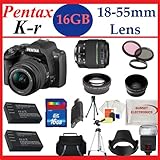 , Pentax K-r Digital SLR Camera with 18-55mm Lens (Black) + Huge Accessories Package Including Wide Angle Macro Lens + 2x Telephoto Lens + 3 Pc Filter KIT + 16gb Sdhc Memory Card & Much More!!.